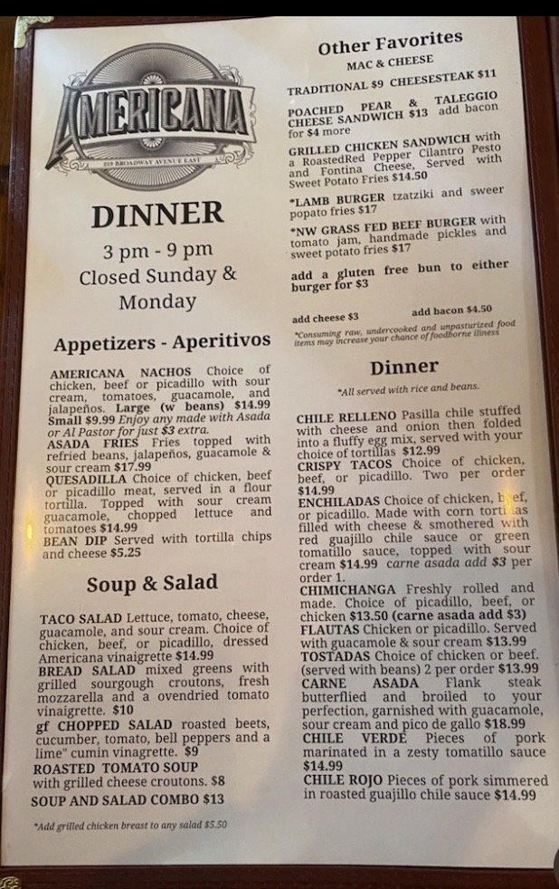 Introducing Americana, a vibrant New American restaurant in Seattle offering a diverse menu of brunch and cocktails. With a cozy yet modern ambiance, Americana provides a casual and welcoming atmosphere for guests. The menu boasts a range of options, from smoked gouda tater tots to French toast with fresh fruits and Nutella pancakes. The cocktail menu is equally impressive, featuring creative concoctions like the GIN(GER) SPICE MARTINI and the FLYING GRAPEFRUIT. Customers rave about the friendly staff and fast service, making Americana a top choice for brunch-goers in Capitol Hill. Whether you're craving a hearty breakfast or looking to sip on craft cocktails, Americana offers a memorable dining experience that will keep you coming back for more.